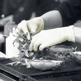 The beaded cuff gives extra durability and helps prevent liquid roll back whilst the lightweight construction provides good tactile sensitivity and is suitable for contact with food.