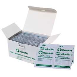 - BS8599 Compliant – Sterile saline wipes are fully compliant with the British Standard for First Aid Wipes and are safe to use on an open wound